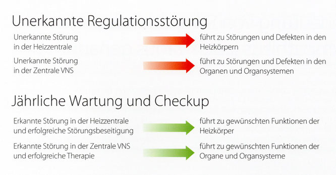 Ein uneingeschränkter Defekt in der Steuerzentrale führt zwangsläufig zu Funktionsstörungen der Heizkörper (Organe und Organsysteme).