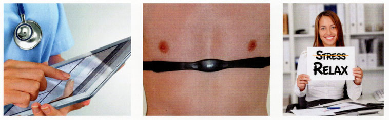 Der Therapeut gibt Ihre Daten im iPad ein. Danach wird Ihnen ein Brustgurt angelegt. Der Gurt hat zwei Kontaktflächen, die 520 x den zeitlichen Abstand von einem Herzschlag zum anderen in Millisekunden aufzeichnen und die Ergebnisse per Funk auf das iPad übertragen.